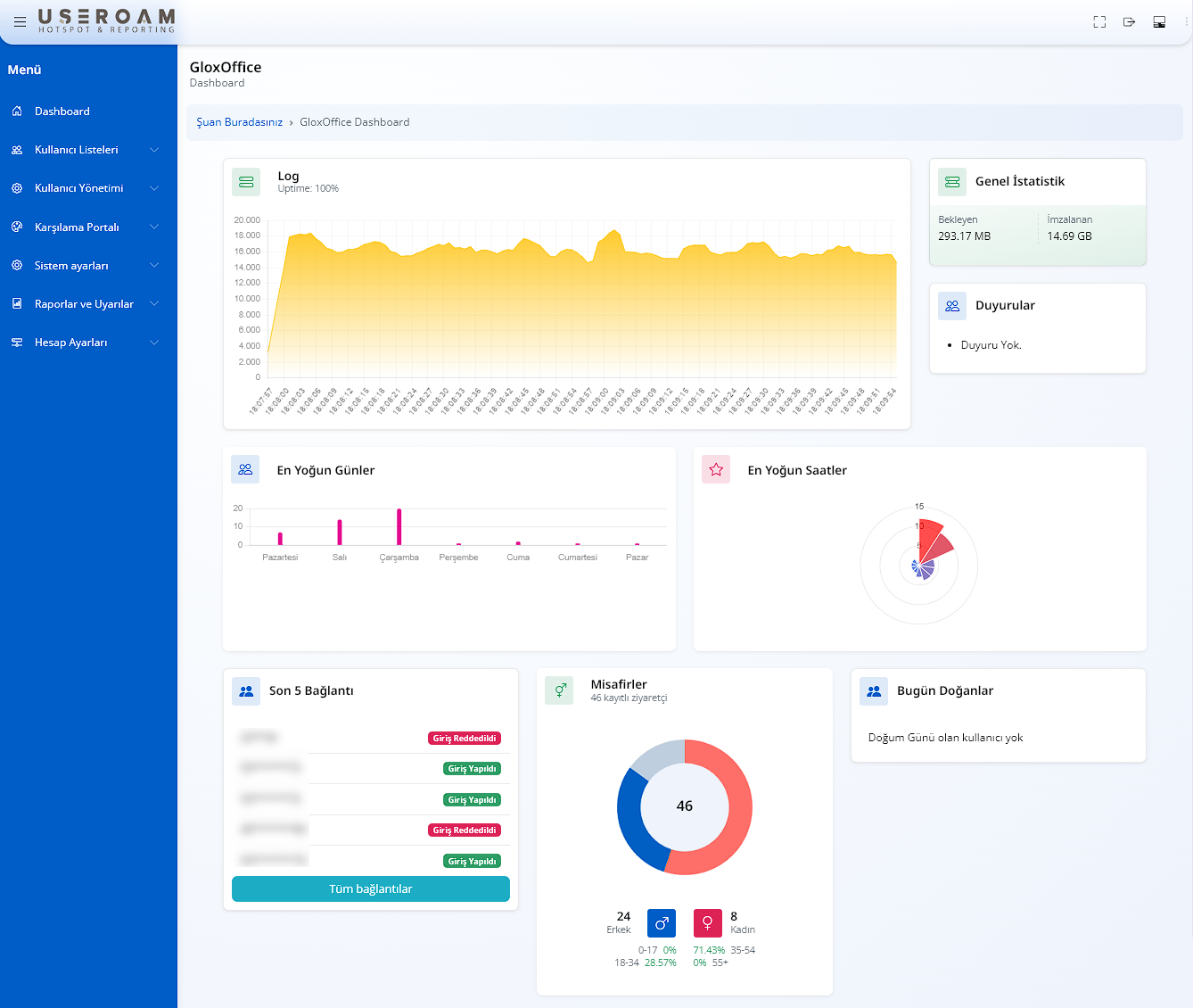 En Yoğun Saatler : Yoğun kullanılan saatlerin görsel raporunu görüntüleyebilirsiniz.