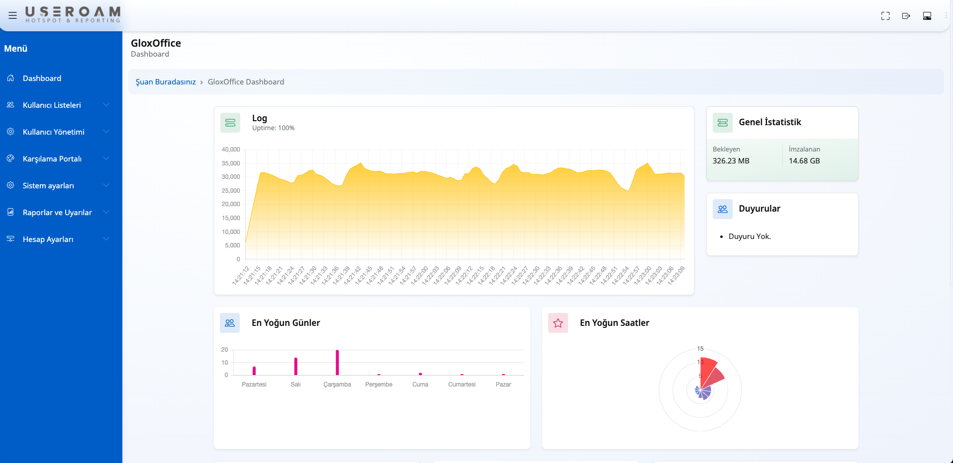En Yoğun Saatler : Yoğun kullanılan saatlerin görsel raporunu görüntüleyebilirsiniz.
